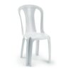 A cadeira é fabricada em polipropileno e é monobloco.