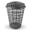 Cesto plástico telado com tampa.