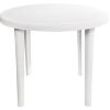 A Mesa de Plástico Galena possui orifício central para encaixe de guarda-sol.